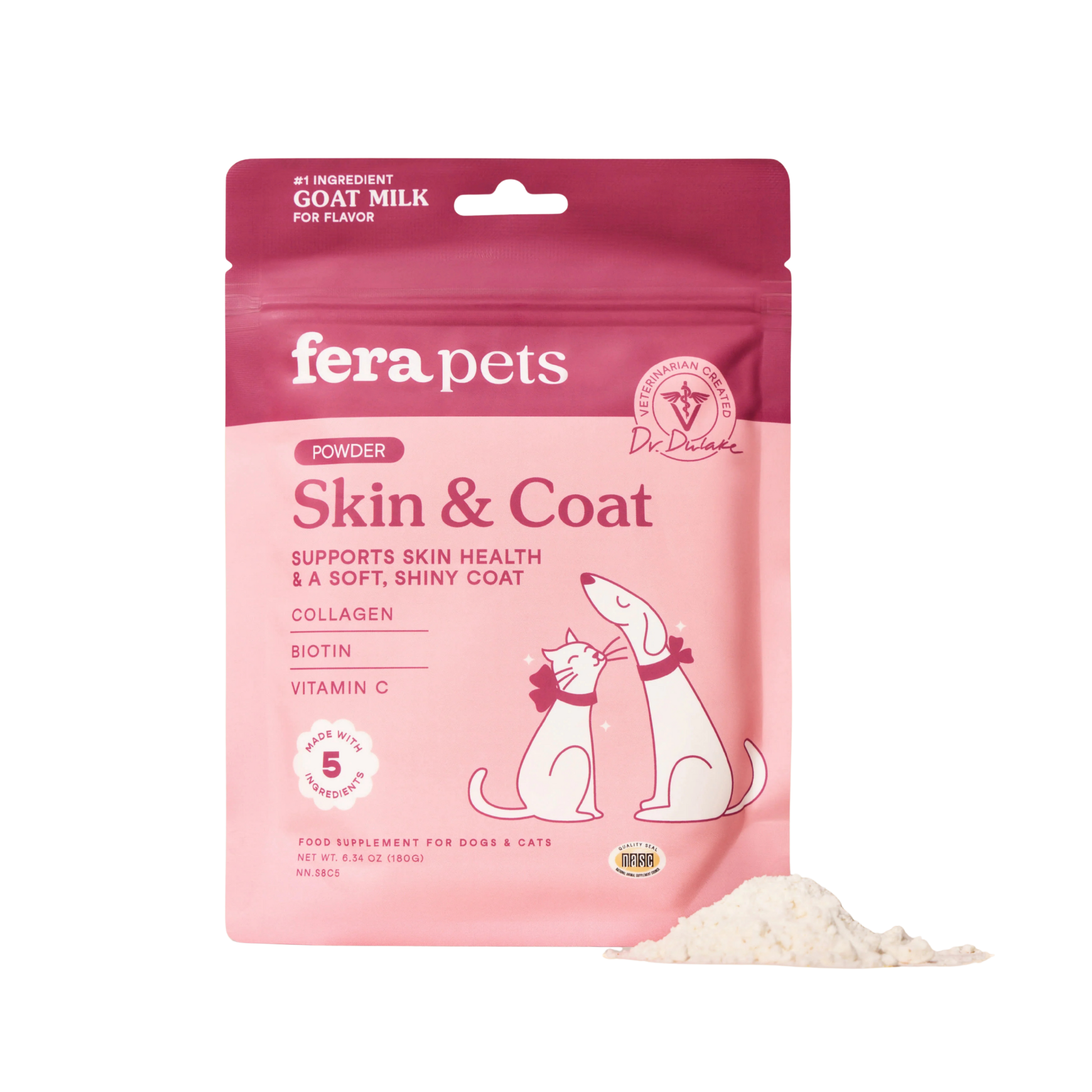 Enhance your pet’s skin and coat health with Fera Pets Skin & Coat Goat Milk Topper. Made with nutrient-rich goat milk and enriched with omega fatty acids, vitamins, and antioxidants, it supports a shiny coat, healthy skin, and overall wellness for both dogs and cats.