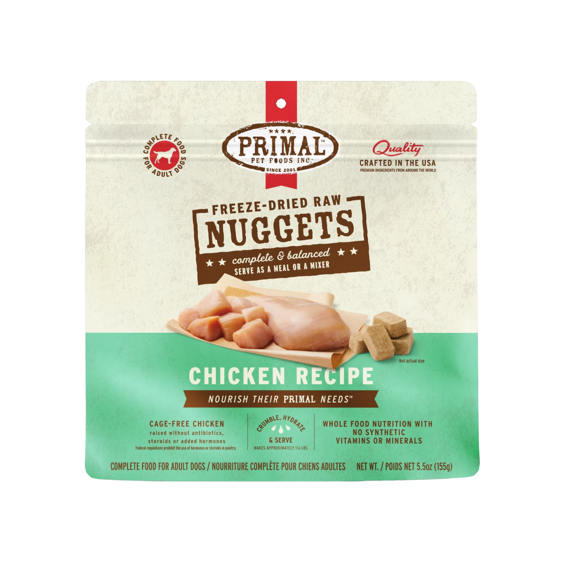Fuel your dog with wholesome, raw-inspired nutrition using Freeze-Dried Raw Chicken Recipe Nuggets Dog Food. Made with high-quality chicken and freeze-dried to preserve natural flavor and essential nutrients, these nuggets deliver rich, digestible protein and real-food goodness in every bite. Perfect as a complete meal or rehydrated for a softer texture, they support overall health, energy, and vitality while keeping mealtime delicious.