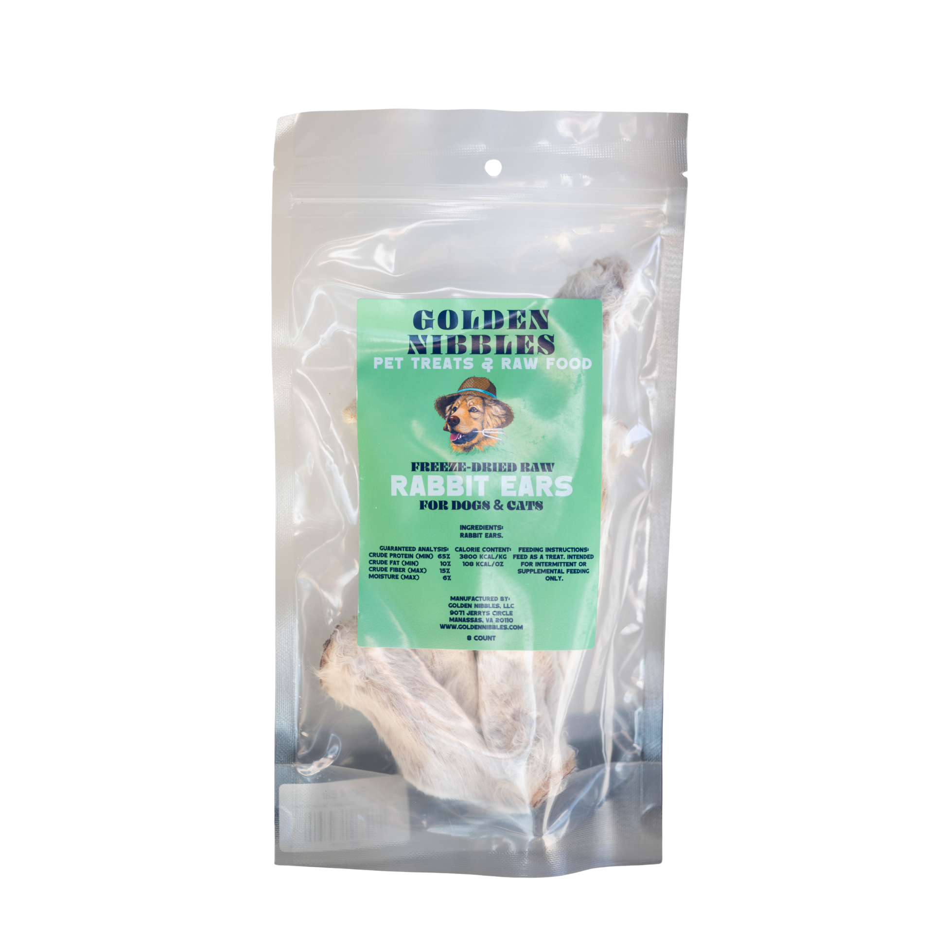 - Single-ingredient freeze-dried raw rabbit ears