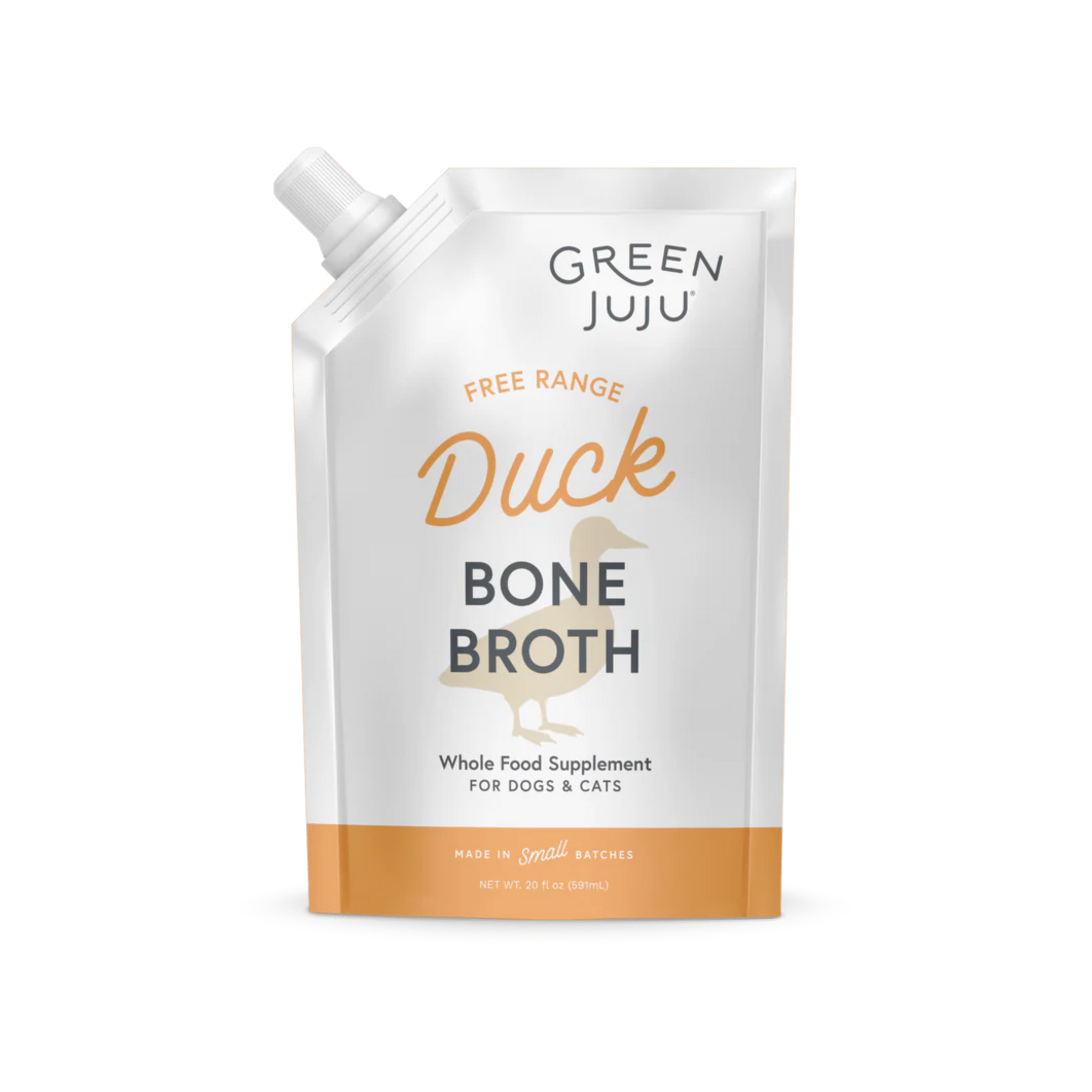 Green Juju Duck Bone Broth for Dogs and Cats is a high-quality wet pet food that is perfect for both dogs and cats. This 20 Ounce pouch contains delicious duck bone broth that is not only tasty but also provides essential nutrients for your pets. Made by Green Juju, a trusted brand in pet food, this wet food is a healthy and convenient option for feeding your furry friends. Give your pets the nourishment they need with Green Juju Duck Bone Broth for Dogs and Cats.