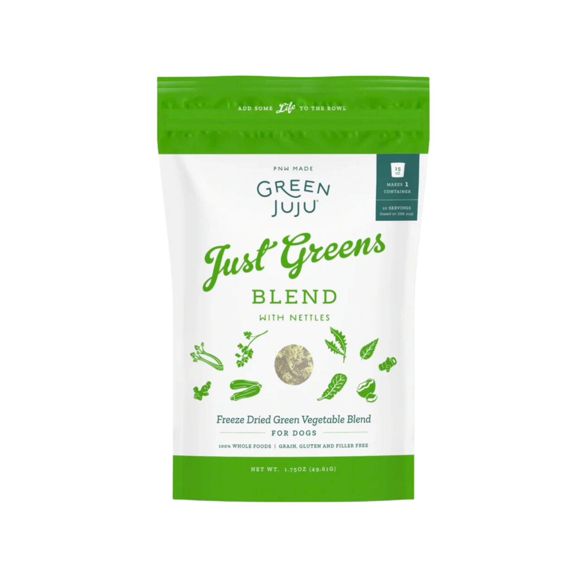 Give your pet a daily dose of fresh, plant-powered nutrition with Green Juju Freeze-Dried Just Greens Blend with Nettles. This nutrient-rich blend features organic green veggies and herbs—including kale, dandelion greens, zucchini, parsley, and now nettles—for added immune and allergy support.