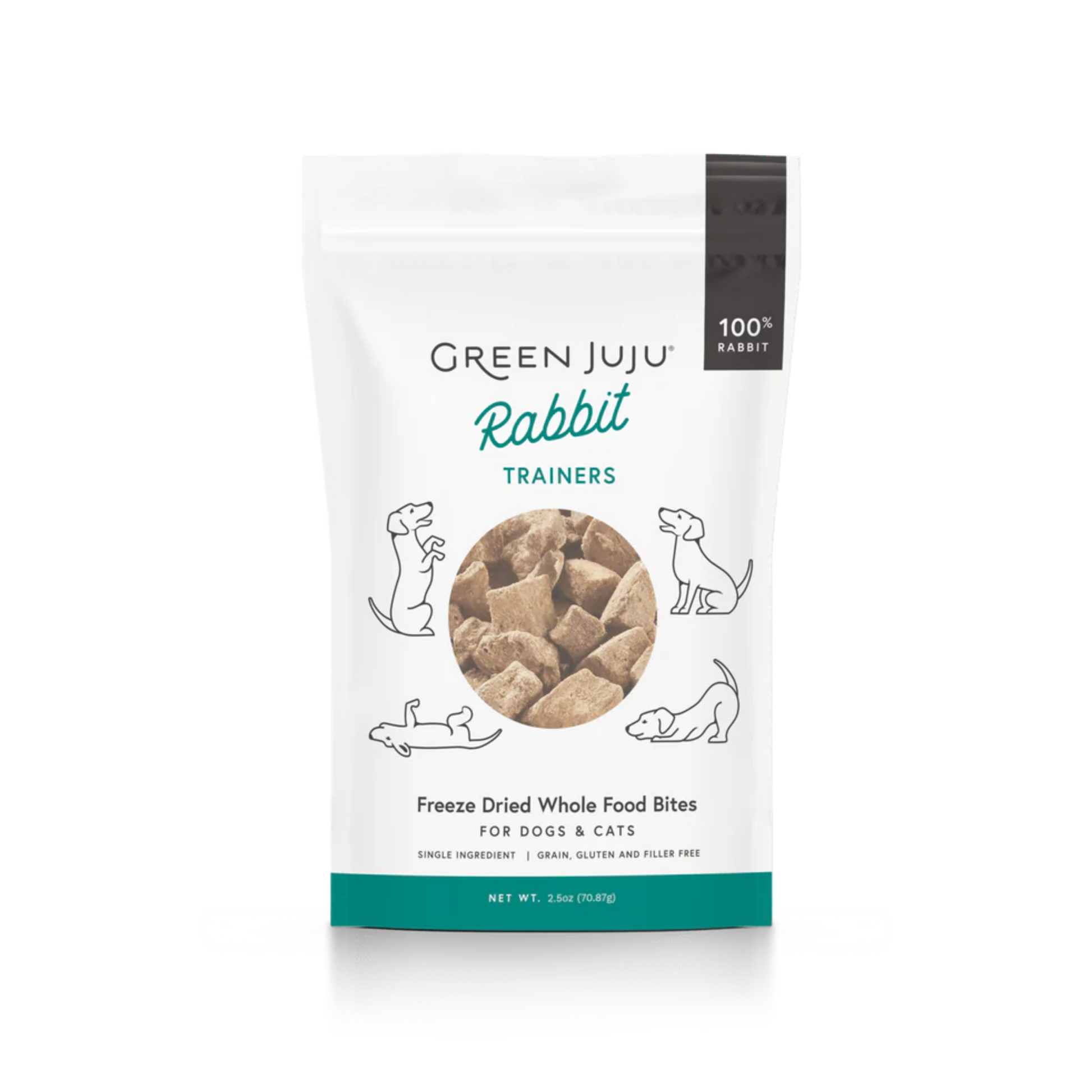 Green Juju Rabbit Trainers Freeze-Dried Dog & Cat Treats are a delicious and nutritious snack for your furry friends. Made by Green Juju, these treats are freeze-dried to lock in the natural flavors and nutrients of the ingredients. They are suitable for both dogs and cats, making them a versatile option for multi-pet households. Each bag contains 2.5 oz of treats, providing plenty of snacks for your pets to enjoy. Give your pets a tasty reward with Green Juju Rabbit Trainers Freeze-Dried Dog & Cat Treats.