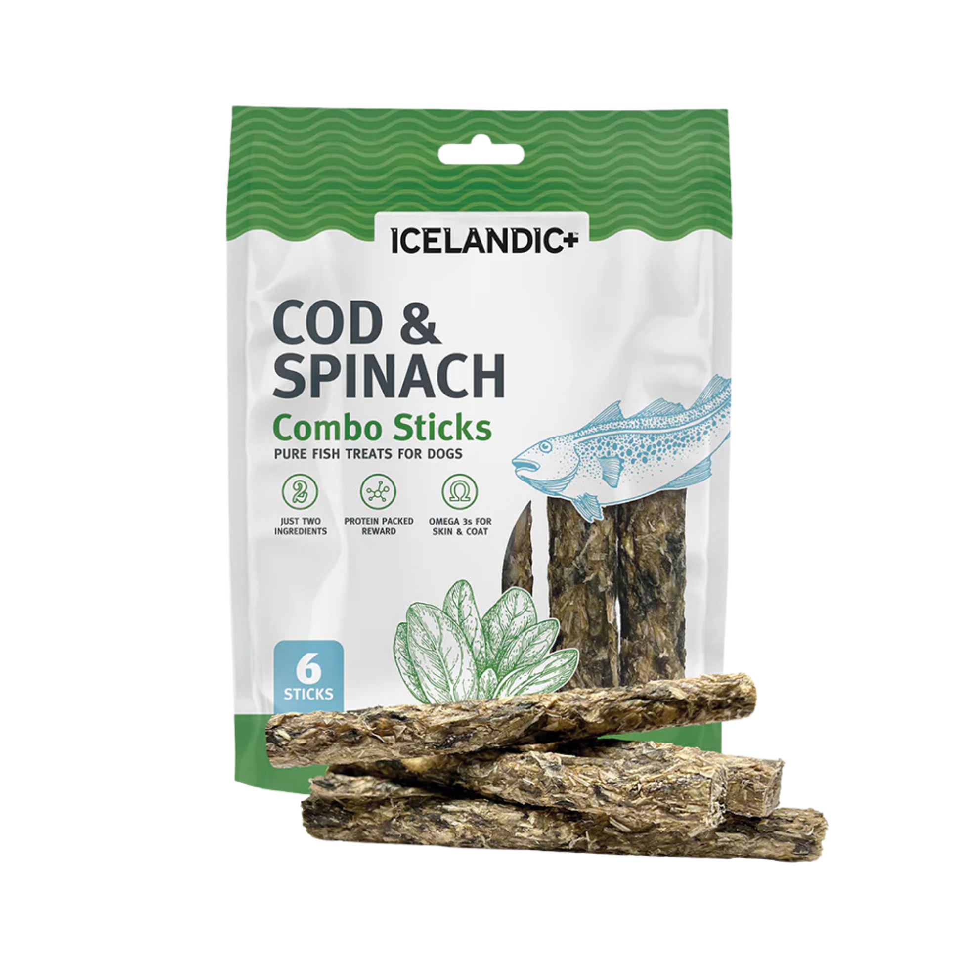 Enhance your dog’s snack time with Icelandic+ Cod & Spinach Combo Sticks for Dogs, a wholesome, nutrient-rich treat made with responsibly sourced fish and nutrient-packed greens. Featuring wild-caught cod paired with spinach, these tasty sticks deliver omega-3 fatty acids for healthy skin and coat while supporting overall wellness with clean, simple ingredients.