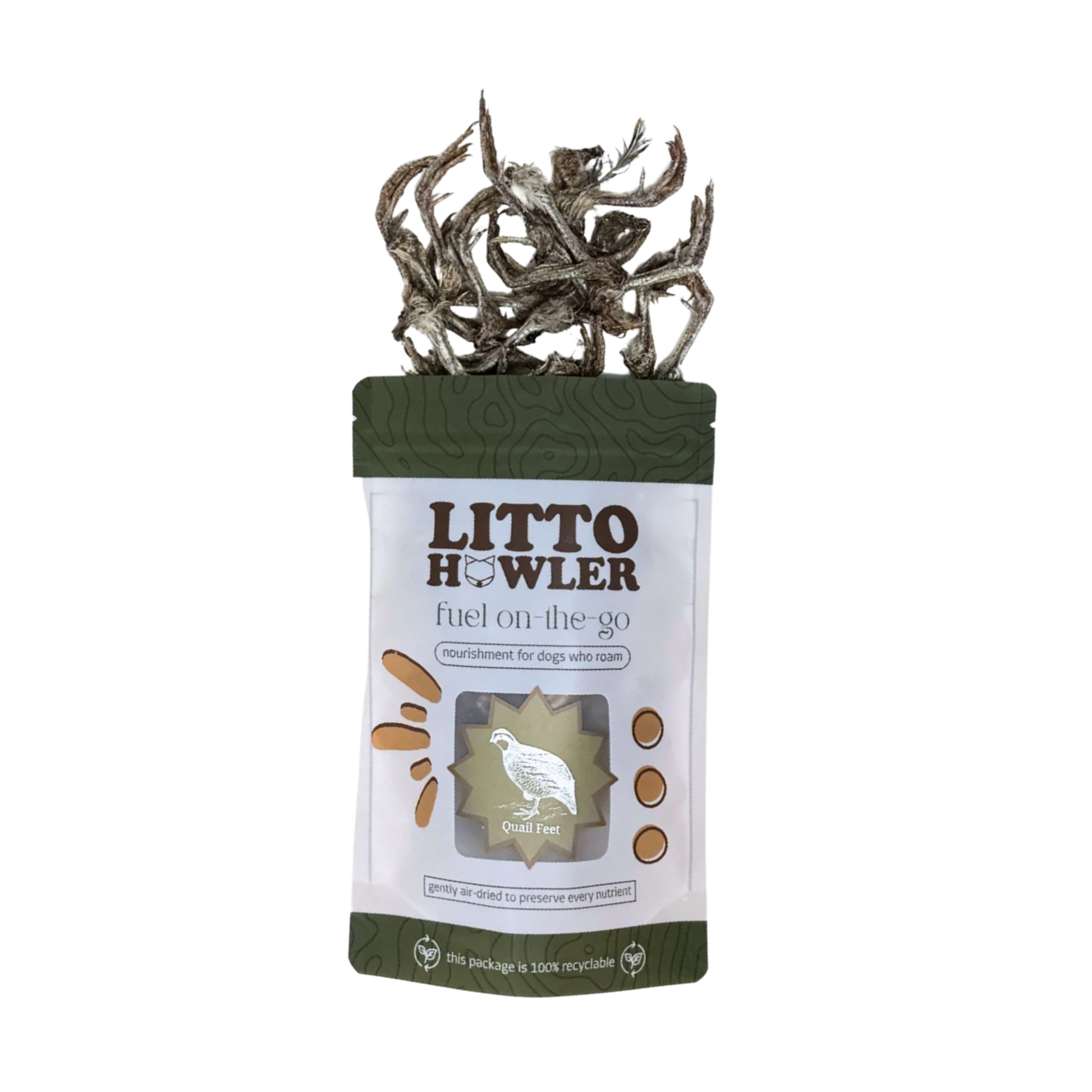 Give your dog a nutritious, crunchy snack with Litto Howler Quail Feet. These single-ingredient treats are gently dehydrated quail feet that deliver joint-supporting benefits and natural dental engagement in a size ideal for dogs of all breeds.