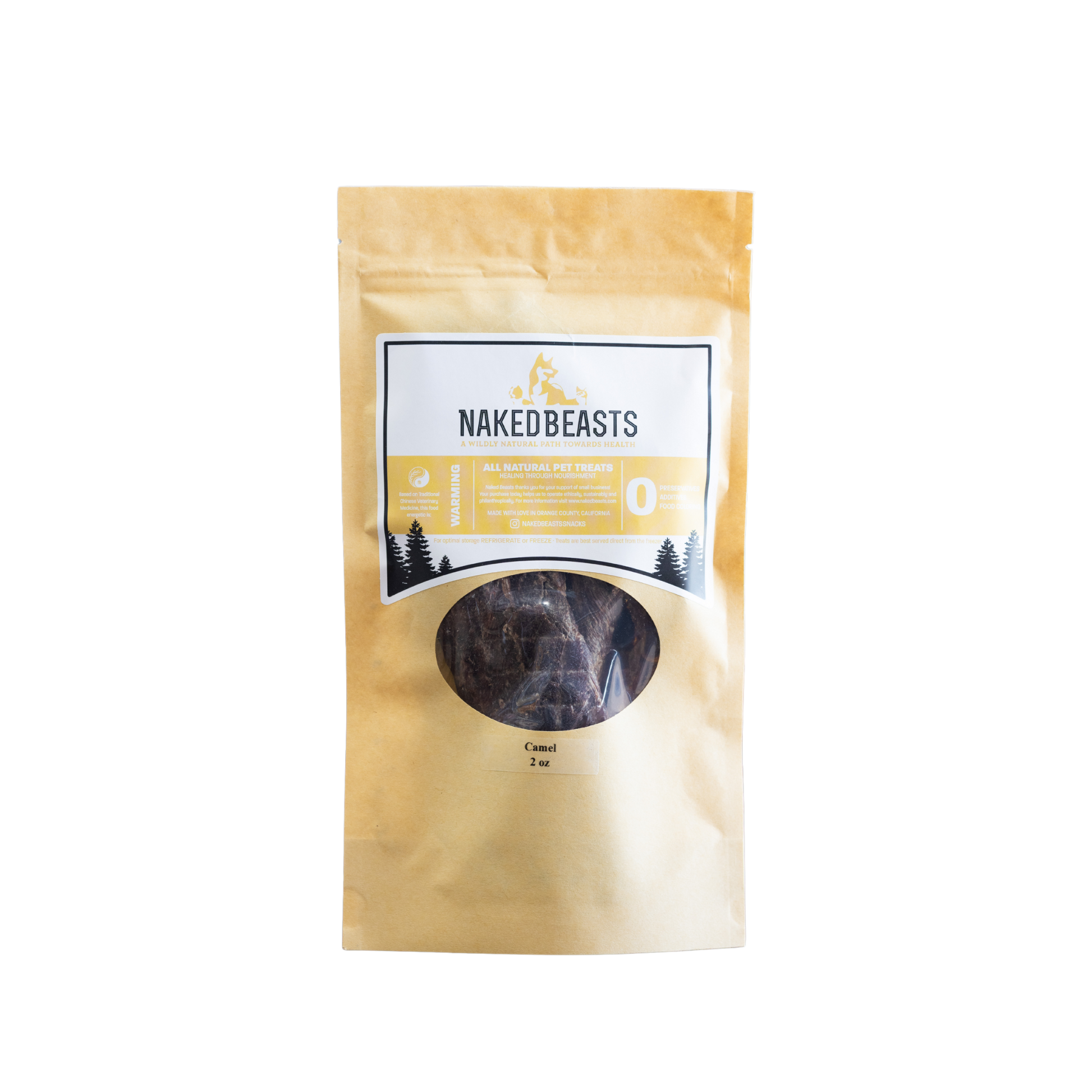 Naked Beasts Dehydrated Camel is a lean, exotic protein treat crafted to give dogs a flavorful and nutritious chewing experience. Naturally dehydrated to lock in nutrients, this single-ingredient snack is rich in protein and essential minerals while remaining free from preservatives, additives, and artificial coloring. Perfect for dogs with sensitivities to common proteins, camel is a unique and healthy alternative that supports overall vitality and keeps tails wagging.