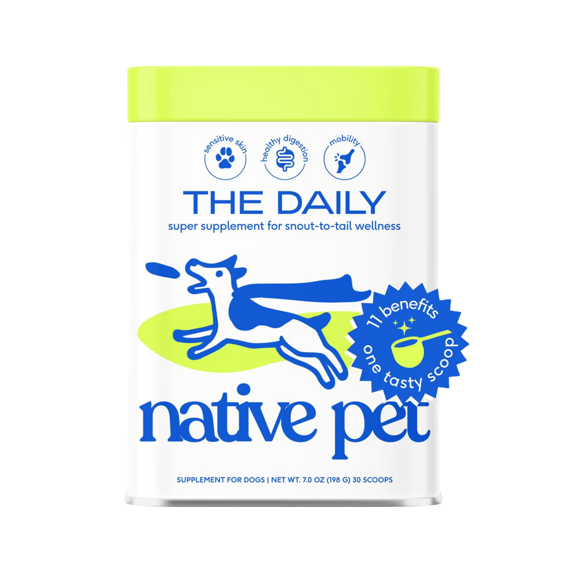 The Native Pet The Daily All-in-One Powder Multivitamin Supplement for Dogs gives your buddy an effortless multivitamin in one easy scoop. This powder helps support your barking buddy’s all-over health, including mobility, energy, gut health, digestion, bladder health, skin, and more. With twelve powerful, active ingredients, this supplement is set to give your pup a pop of support from snout to tail. Feel good knowing you’re doing what you can to support your furry friend’s health with an easy-to-serve powder supplement.
