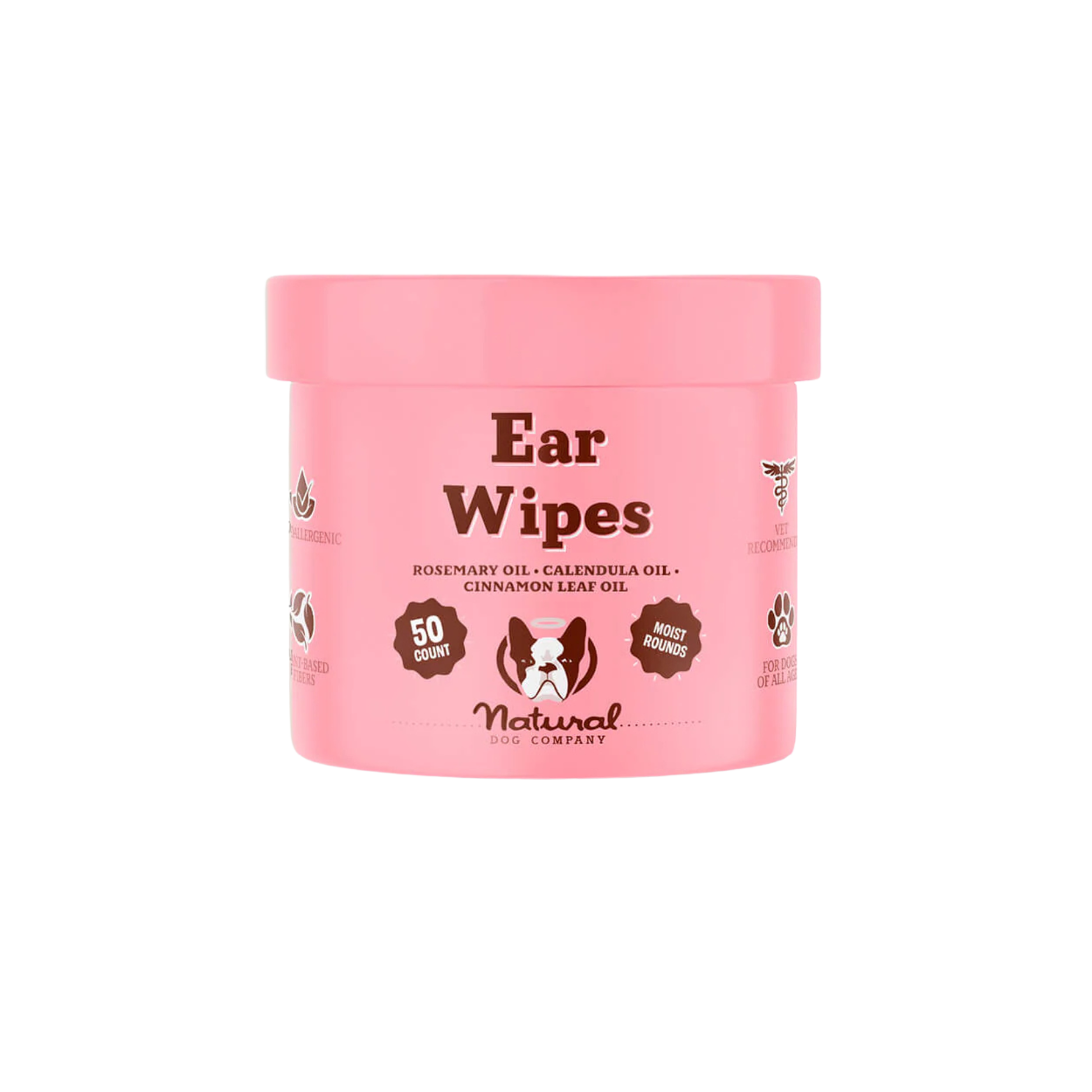 Keep your dog's ears clean, fresh, and healthy with Natural Dog Company Ear Wipes. These gentle, plant-based wipes are specially formulated to remove wax, dirt, and debris while helping to prevent the buildup of yeast and bacteria that can lead to infections. Infused with natural ingredients like cinnamon leaf oil, myrrh, calendula, and rosemary, they provide antimicrobial, antifungal, and anti-inflammatory benefits to soothe irritation and support overall ear health.