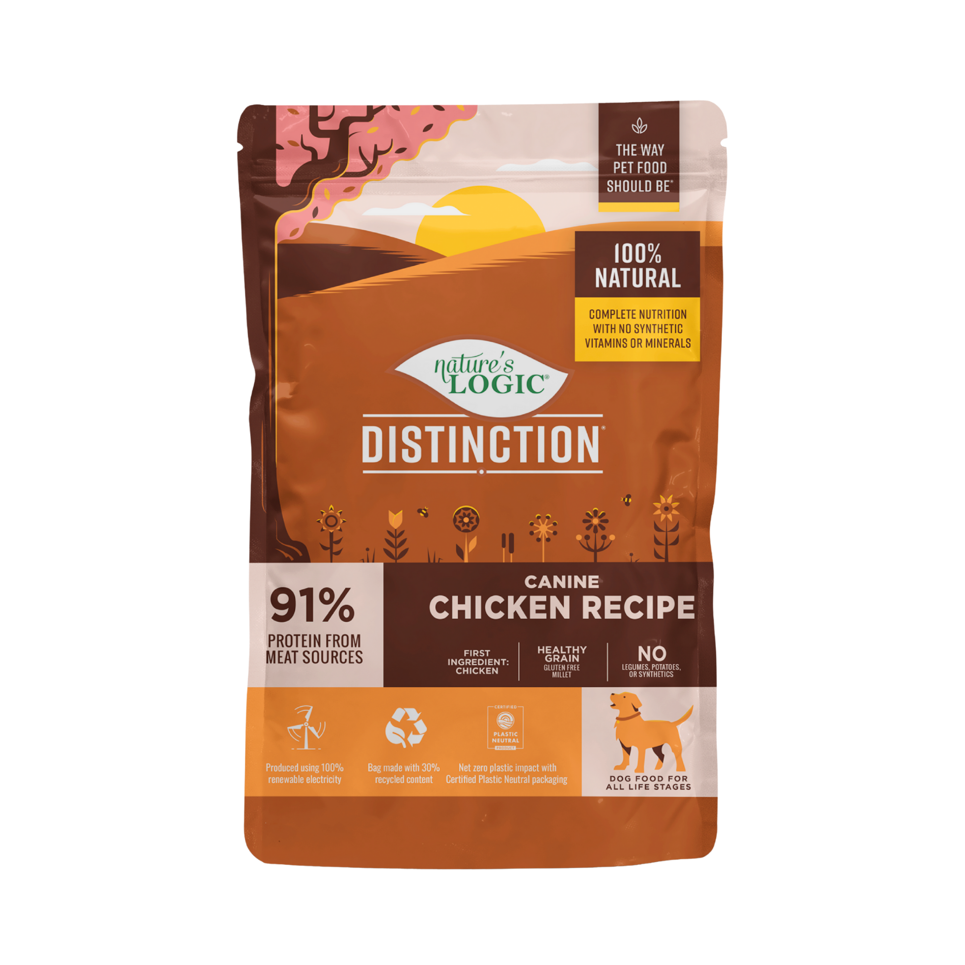 Fuel your dog with clean, nature-inspired nutrition with Nature’s Logic Distinction Canine Chicken Recipe Dry Dog Food. Made with real chicken as the top ingredient and delivering 91% of its protein from meat-based sources, this grain-free kibble is free from legumes, potatoes, corn, wheat, soy, and gluten .