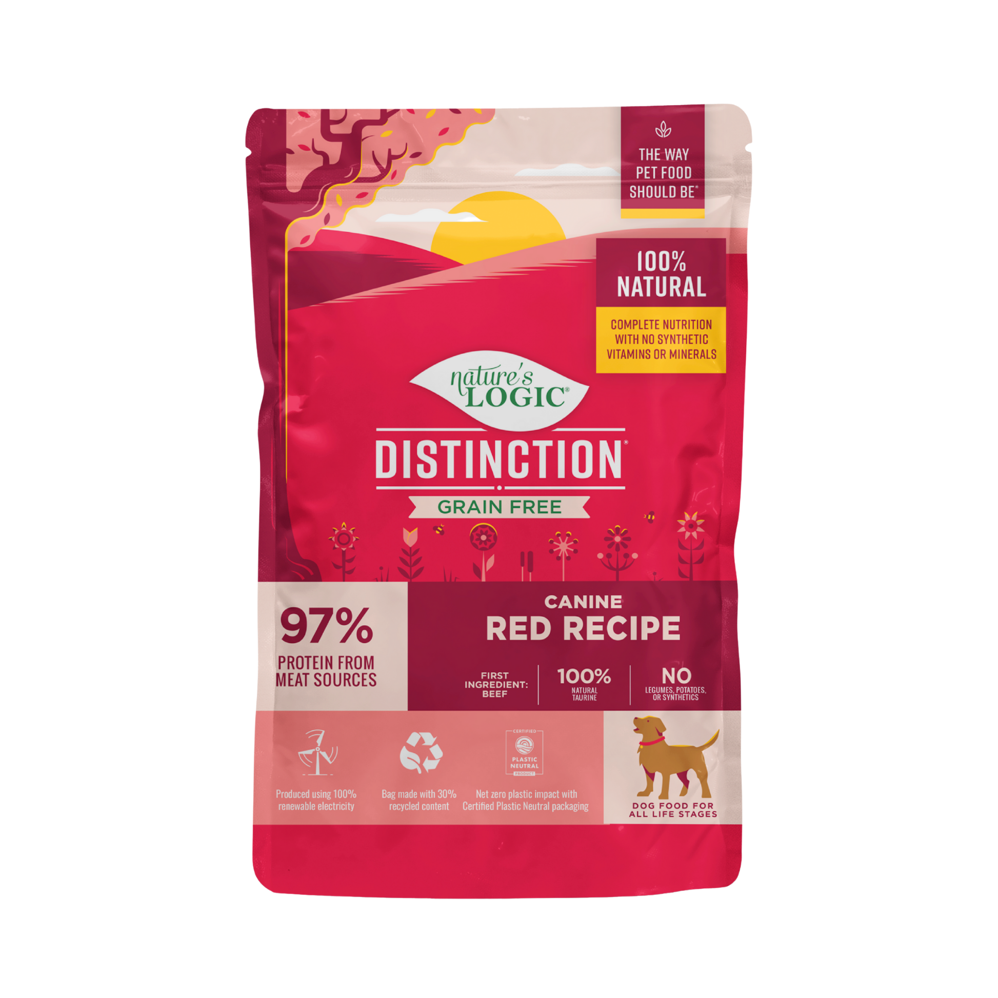 Celebrate your dog’s carnivore instincts with Nature’s Logic Distinction Canine Red Recipe, a grain- and legume-free kibble crafted with responsibly sourced red meats including beef, bison, venison, goat, elk, lamb, and pork. With over 97% of protein derived from meat sources and no potatoes, corn, soy, or grains, this recipe offers clean, nutrient-rich nourishment.