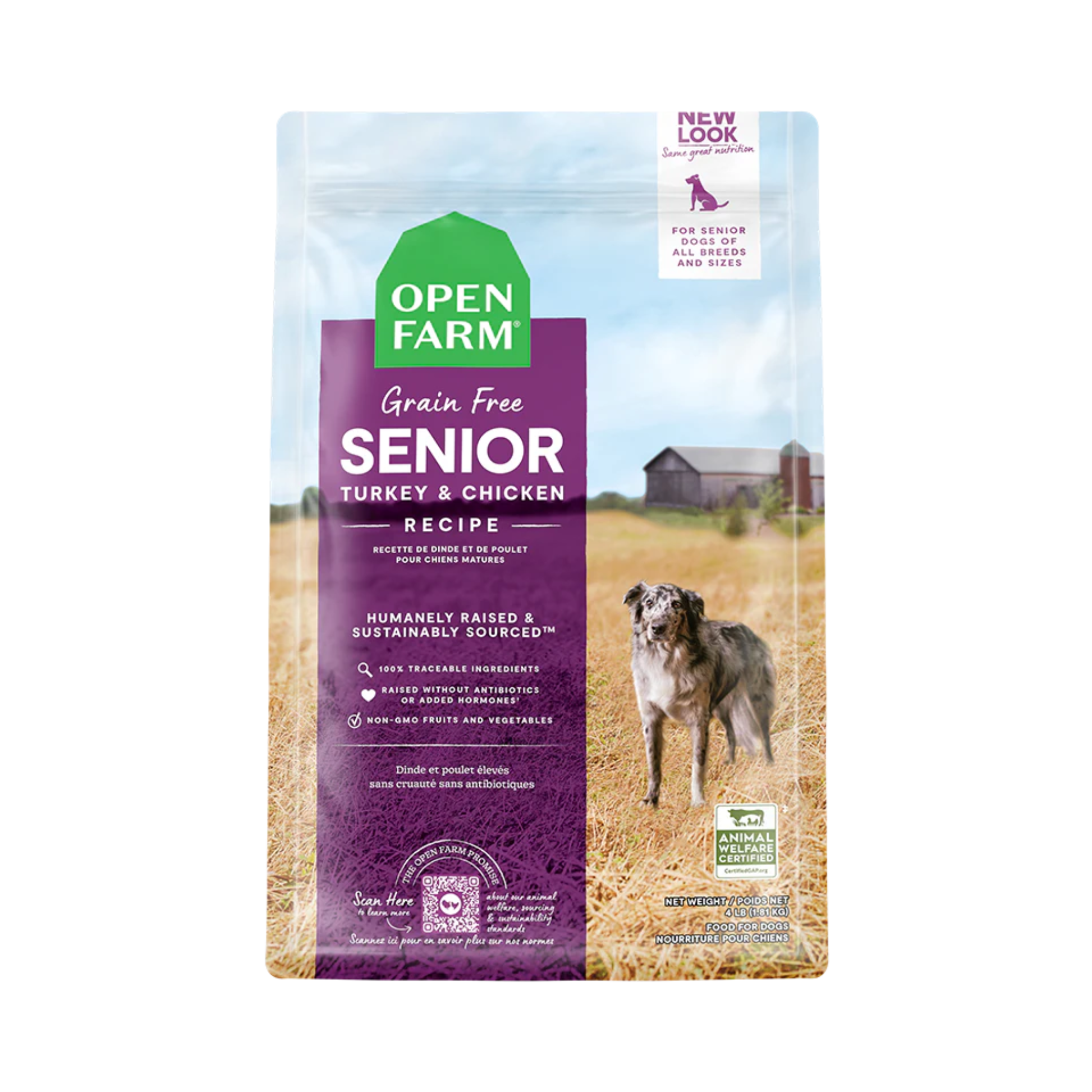 Support your senior dog’s vitality and well-being with Open Farm Senior Grain-Free Dry Dog Food—a carefully crafted formula designed to meet the unique nutritional needs of aging dogs. Made with humanely raised turkey and wild-caught whitefish, this protein-rich recipe helps maintain muscle strength while being gentle on digestion.