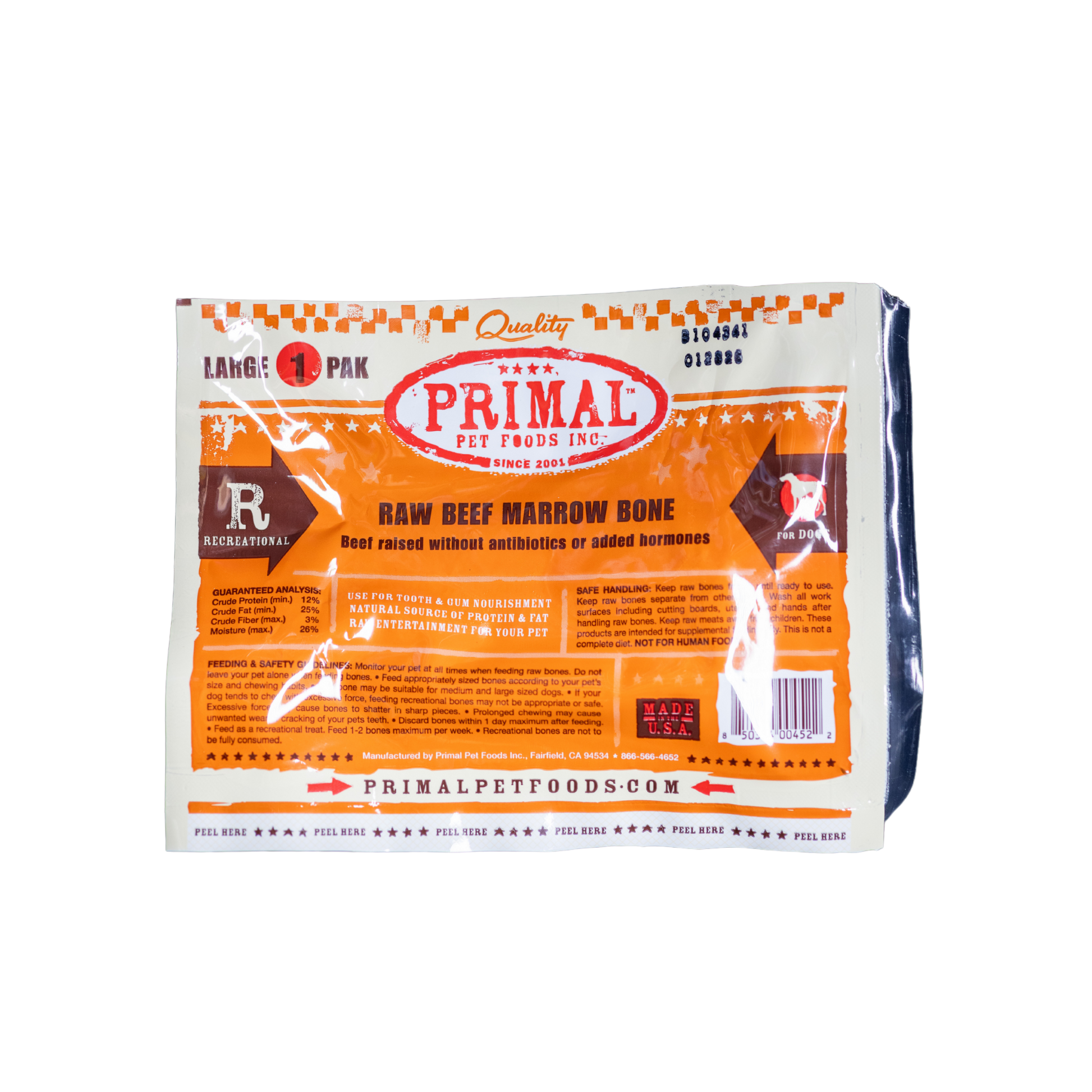 Give your dog a wholesome, long-lasting chew with the Primal Raw Beef Marrow Bone – Large! Sourced from grass-fed, humanely raised beef, this raw marrow bone is packed with essential nutrients, healthy fats, and minerals to promote strong teeth, joints, and overall well-being.