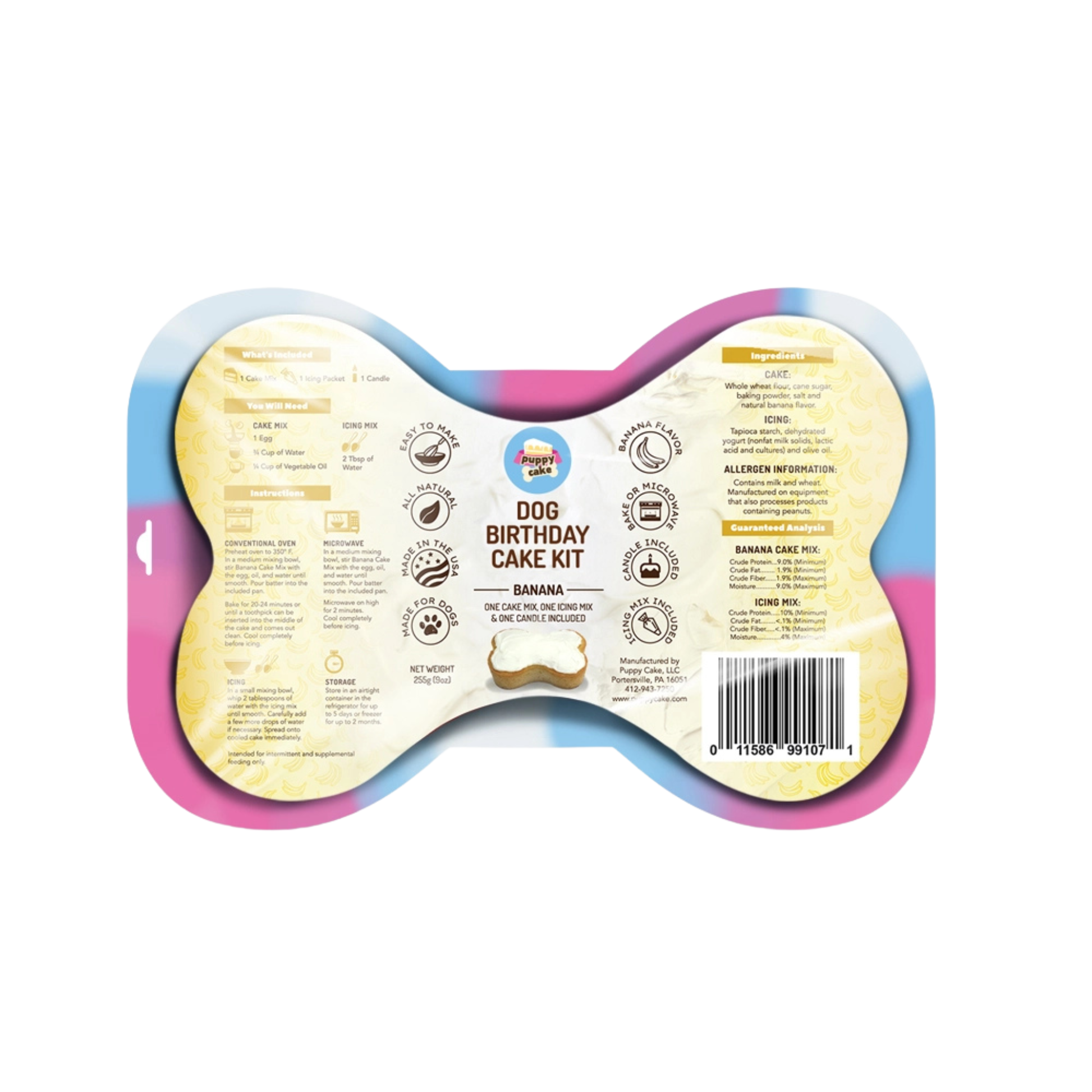 Make your dog’s special day extra sweet with the Puppy Cake Banana Dog Birthday Cake Kit! This easy-to-make kit includes everything you need to bake a soft, fluffy, banana-flavored cake your pup will love—plus a creamy icing mix and a birthday candle to complete the celebration.