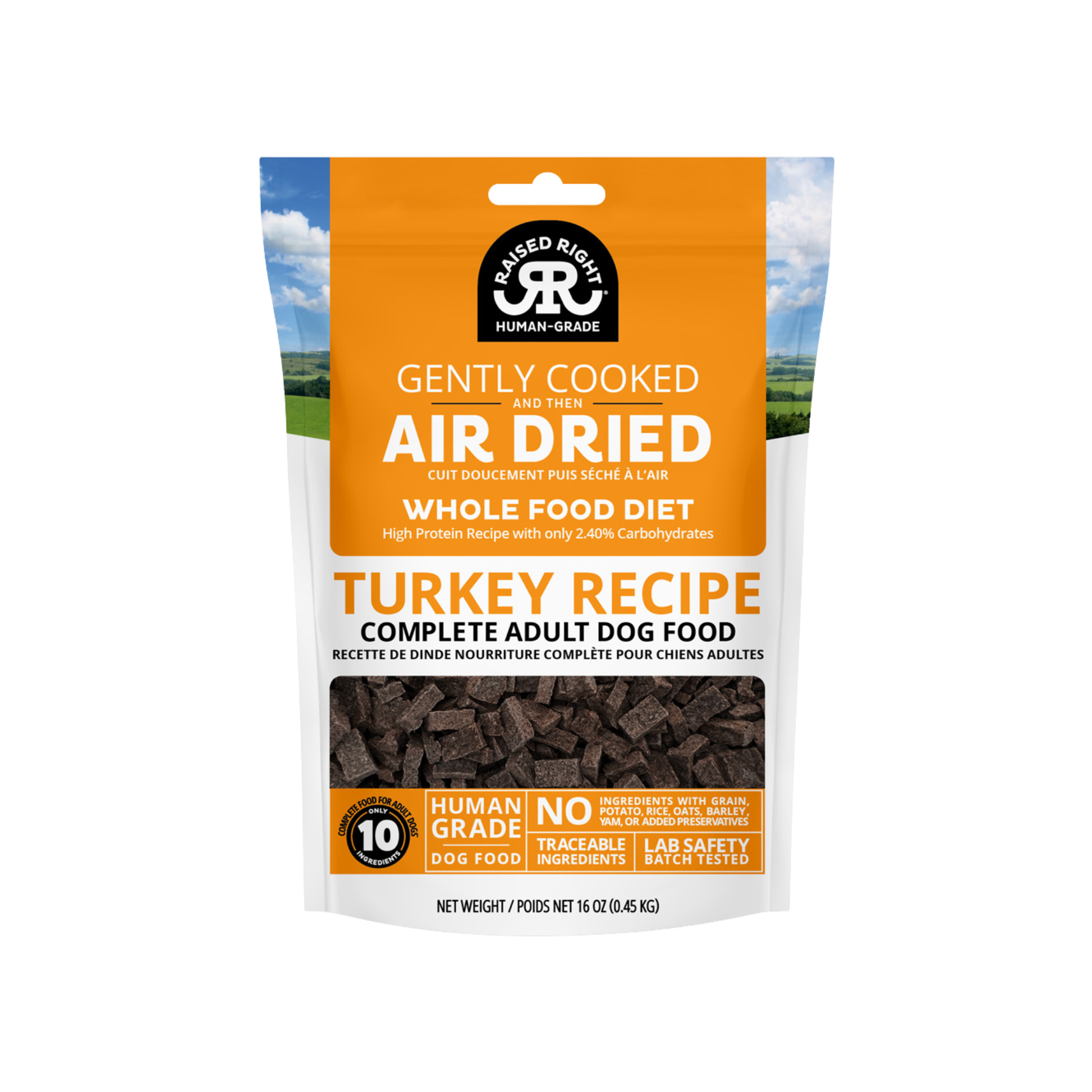Raised Right Gently Cooked and Then Air-Dried Turkey Recipe for Adult Dogs delivers clean, human-grade nutrition made with premium turkey and a limited selection of wholesome ingredients. This thoughtfully prepared recipe is gently cooked to eliminate pathogens, then slowly air-dried to preserve nutrients, flavor, and digestibility. Formulated for adult dogs, it offers a high-protein, low-carb meal that supports lean muscle, healthy digestion, and overall vitality—without unnecessary fillers.
