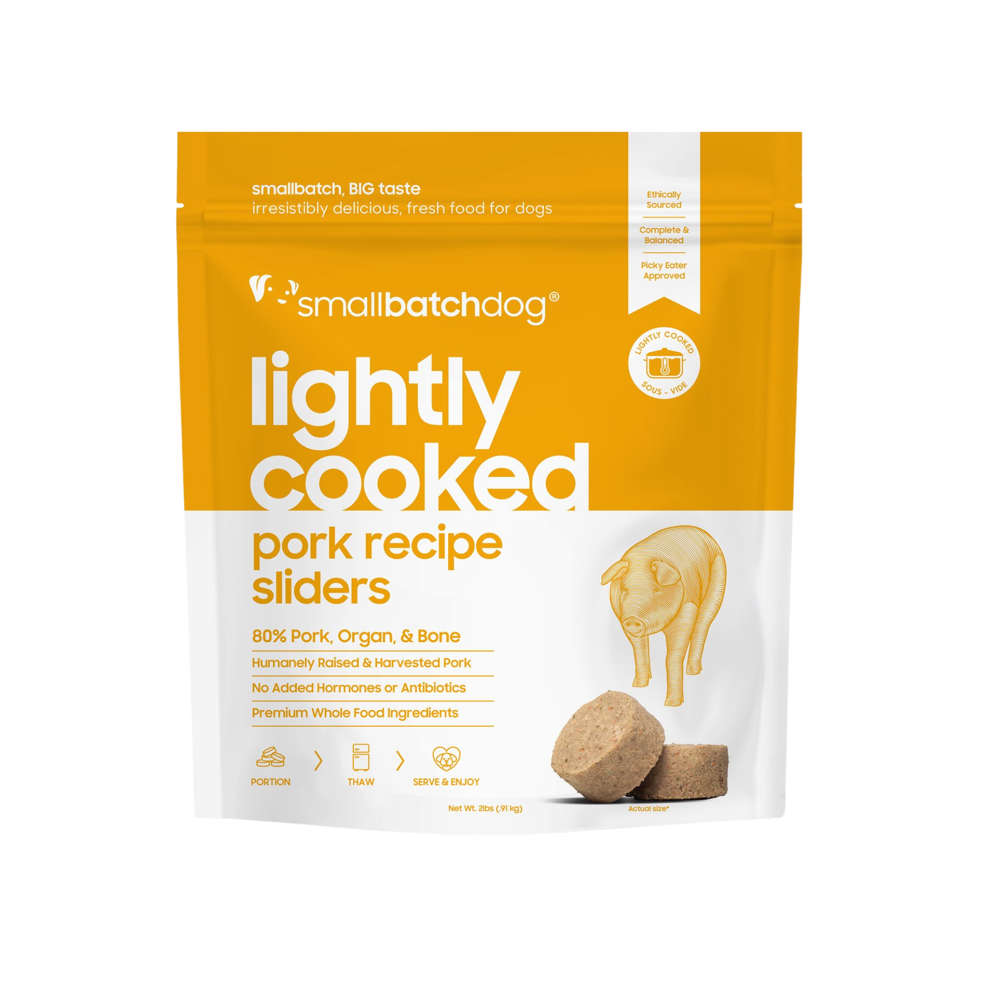 Delight your dog’s taste buds with the fresh, flavorful goodness of Smallbatch Lightly Cooked Pork Recipe Sliders, crafted with premium pasture-raised pork and gently cooked to preserve natural nutrients and savory taste.