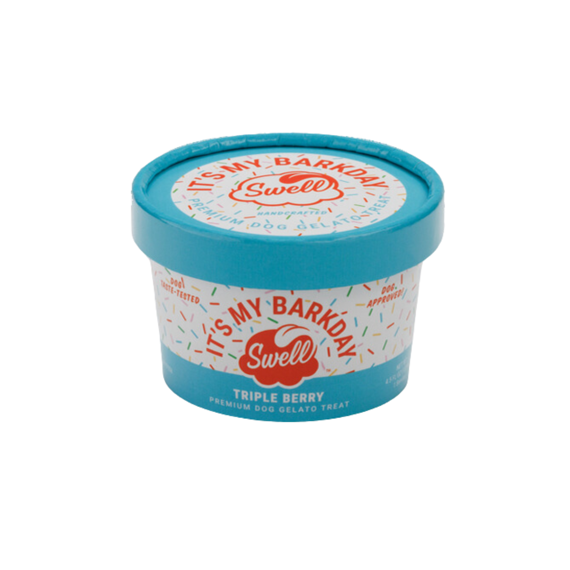 Celebrate your pup’s special day with Swell Dog "It's My Barkday" Triple Berry Gelato! This festive frozen treat combines the natural goodness of strawberries, blueberries, and blackberries for a burst of berry flavor your furry friend will love.