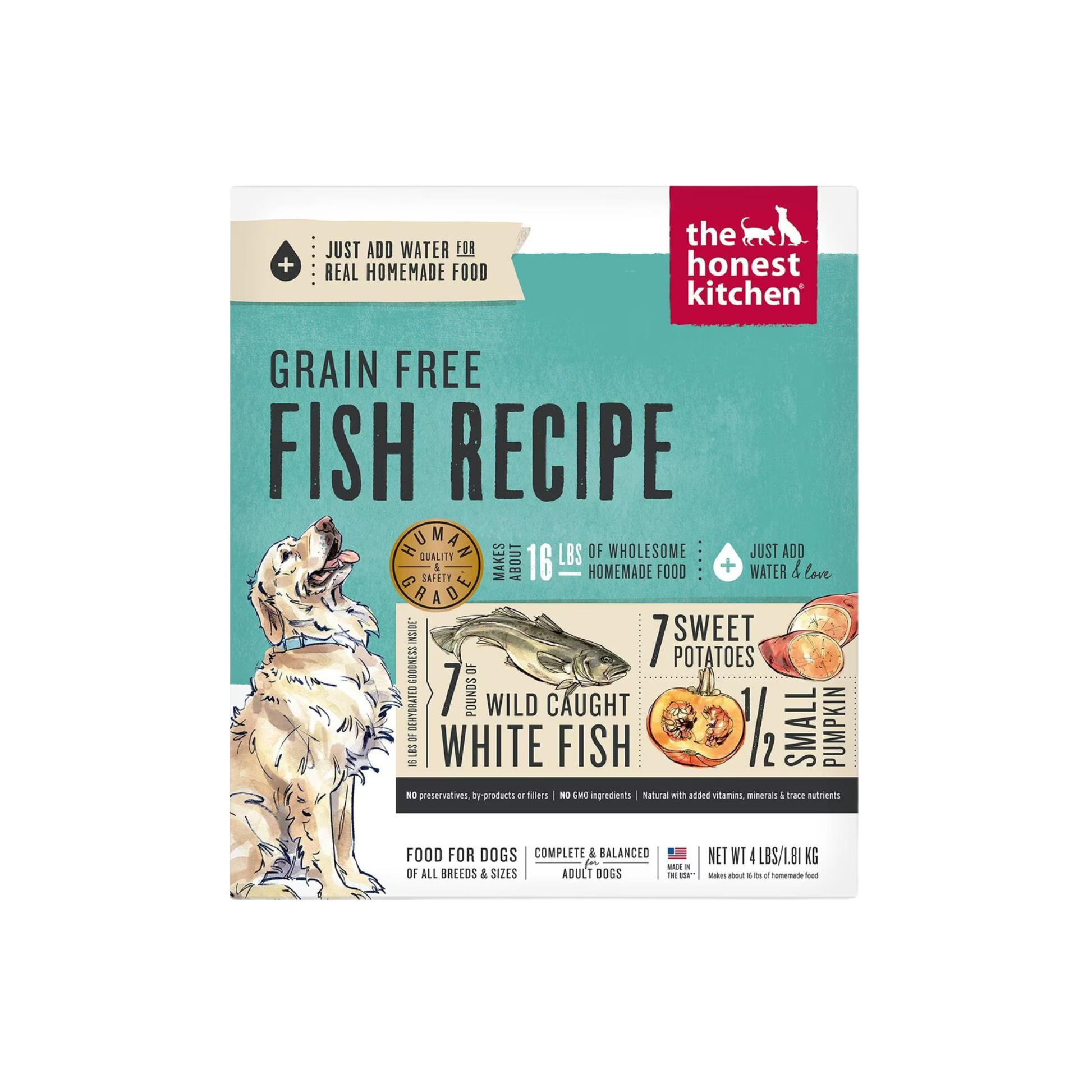 - Made with wild-caught white fish as the single animal protein