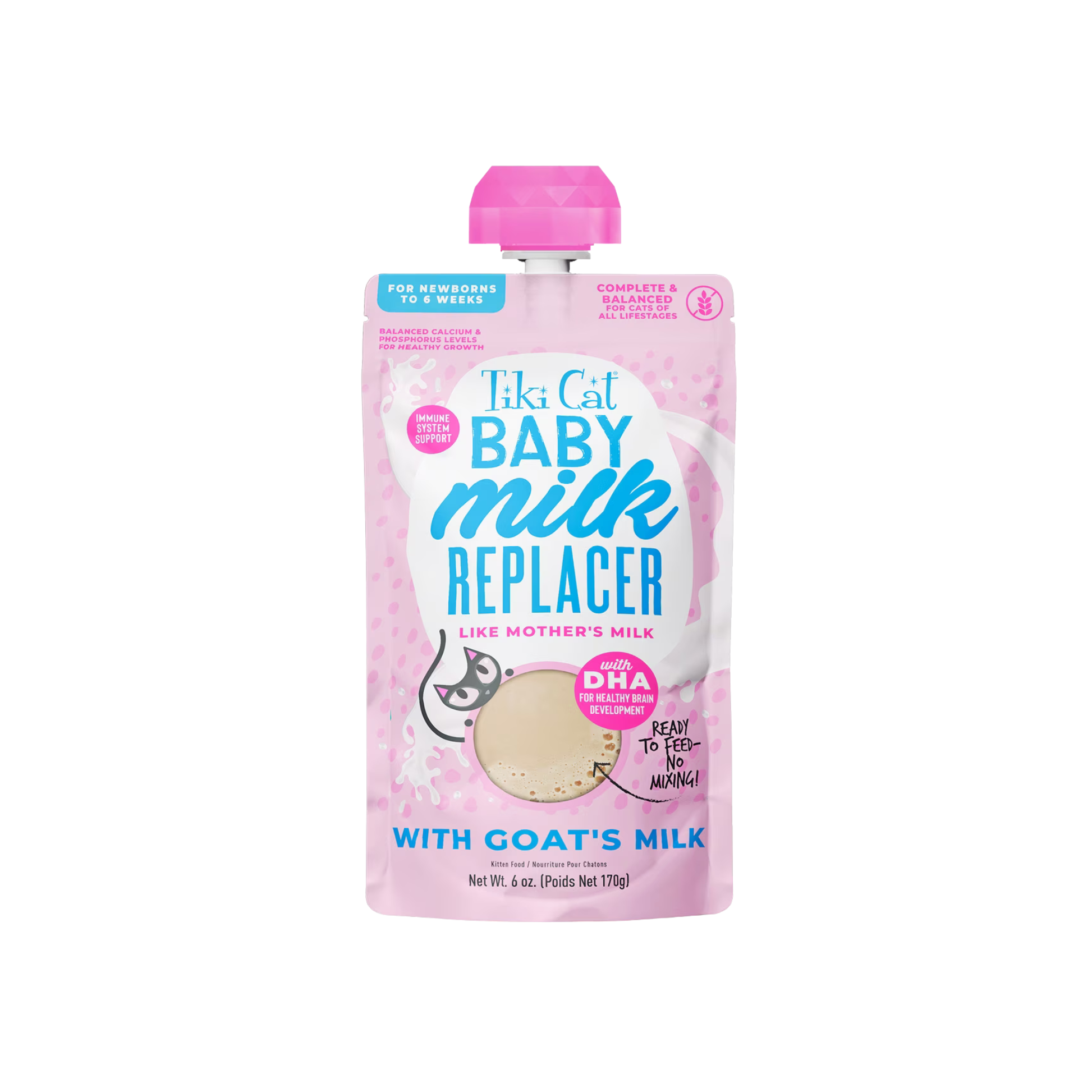 Tiki Cat Baby Goat Milk Replacer provides gentle, nourishing support for kittens who need supplemental or complete milk nutrition. Made with easily digestible goat milk, this formula is designed to closely mimic a mother cat’s milk while delivering essential vitamins, minerals, and DHA for healthy growth and development. Smooth, palatable, and easy to prepare, it’s an ideal choice for newborn, orphaned, or transitioning kittens.