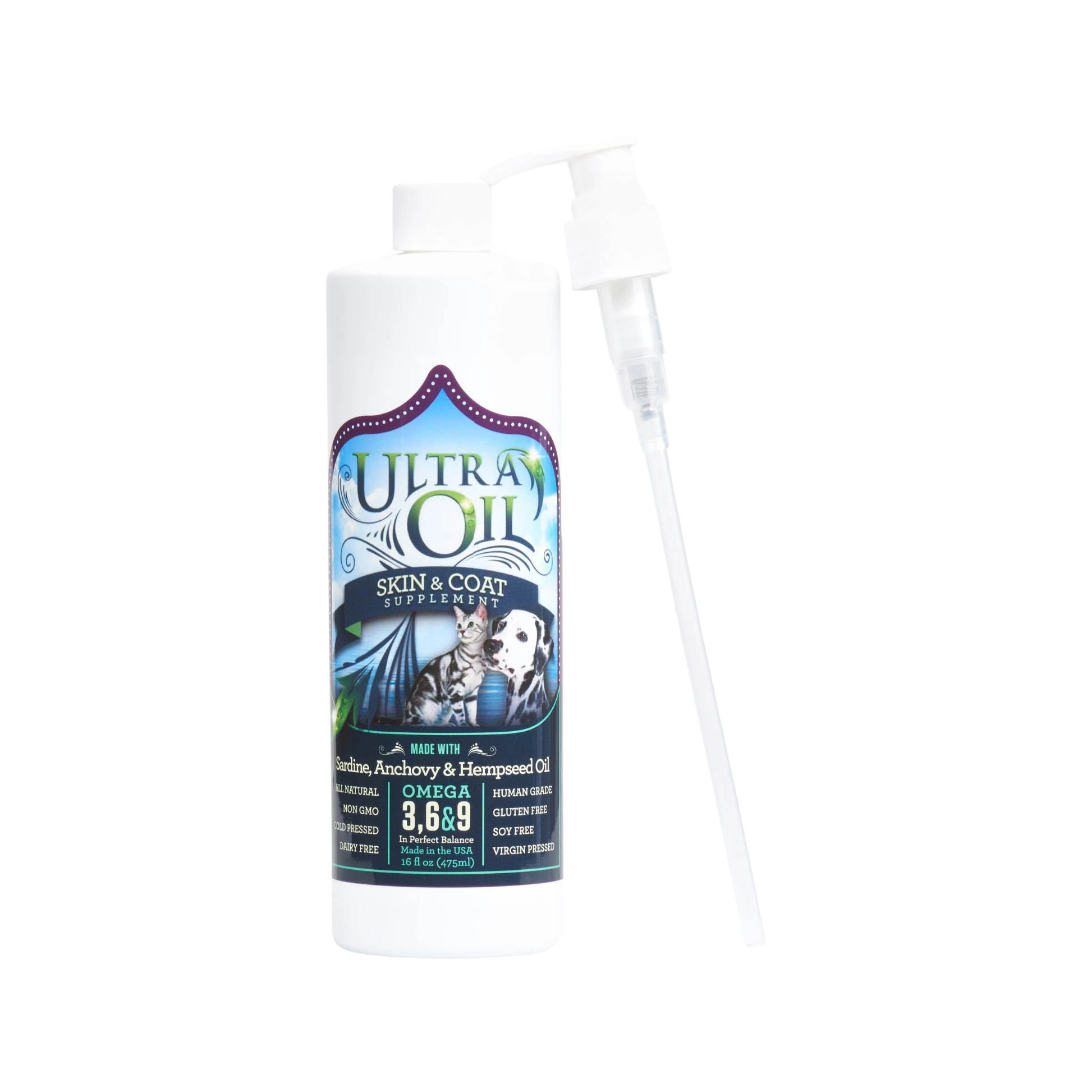 Support your pet’s skin, coat, and overall health naturally with Ultra Oil Skin and Coat Supplement. This premium formula blends hemp seed oil, flaxseed oil, fish oil, and grapeseed oil to provide a powerful source of Omega-3, 6, and 9 fatty acids. Designed to help relieve dry, itchy skin, improve coat shine, and support joint and heart health, Ultra Oil is an easy way to boost your pet’s daily nutrition.